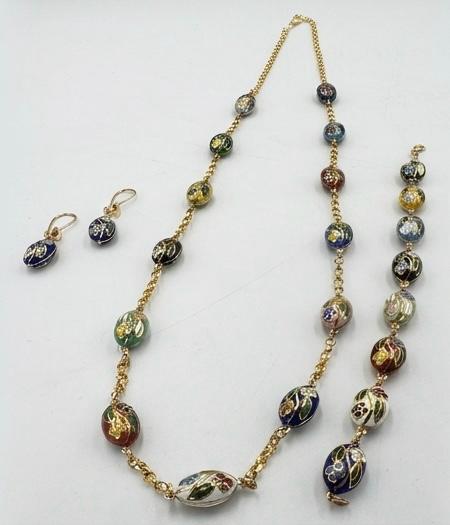 طقم مجوهرات فاخر من الذهب عيار 21 والمينا الملونة المرسومة يدوياً