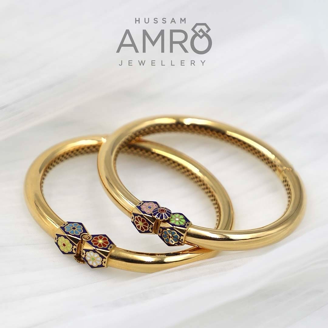 اسوارة ذهب ملونة بالمينا | مجوهرات عمرو